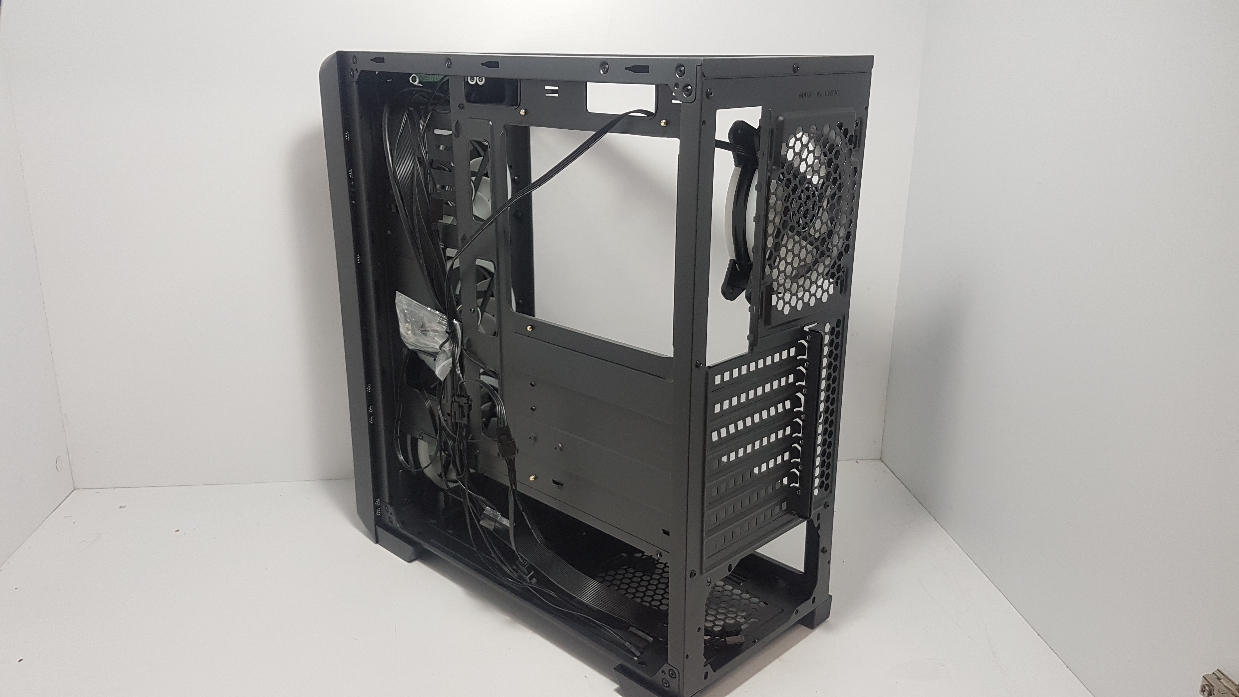 조립을 하다보니 선정리 공간이 협소했습니다. 평균적인 케이스에 비하면 적당한 편이지만, 얼마전 리뷰했던 마이크로닉스의 H2a케이스에서는 선정리 공간이 넓었기 때문에 조금 아쉬운 점으로 남습니다. 후속모델에서는 개선되기를 바랍니다. 파워 서플라이와 하드 장착 공간이 좁아 남은 선들을 정리하기 조금 힘든 점도 있었습니다.